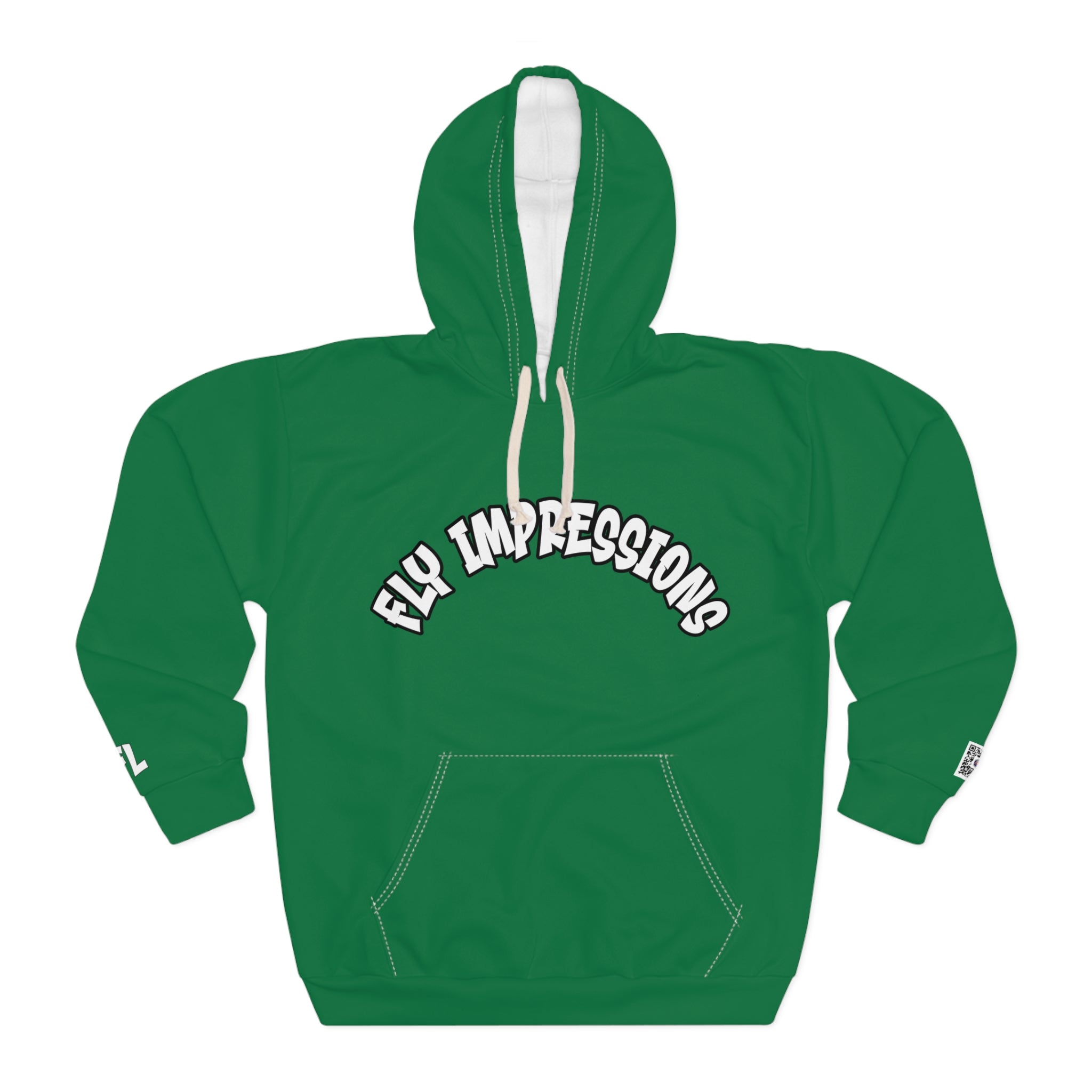 This FLY IMPRESSIONS HOODIE is made for warmth and comfort with a FLY TOUCH. Made to be easily customizable without white lines at the seams, this all-over print pullover hoodie is waiting for you to add a great design and it instantly becomes fashionable. It features a large front pocket, a hood with a drawstring, and is custom cut and sewn.