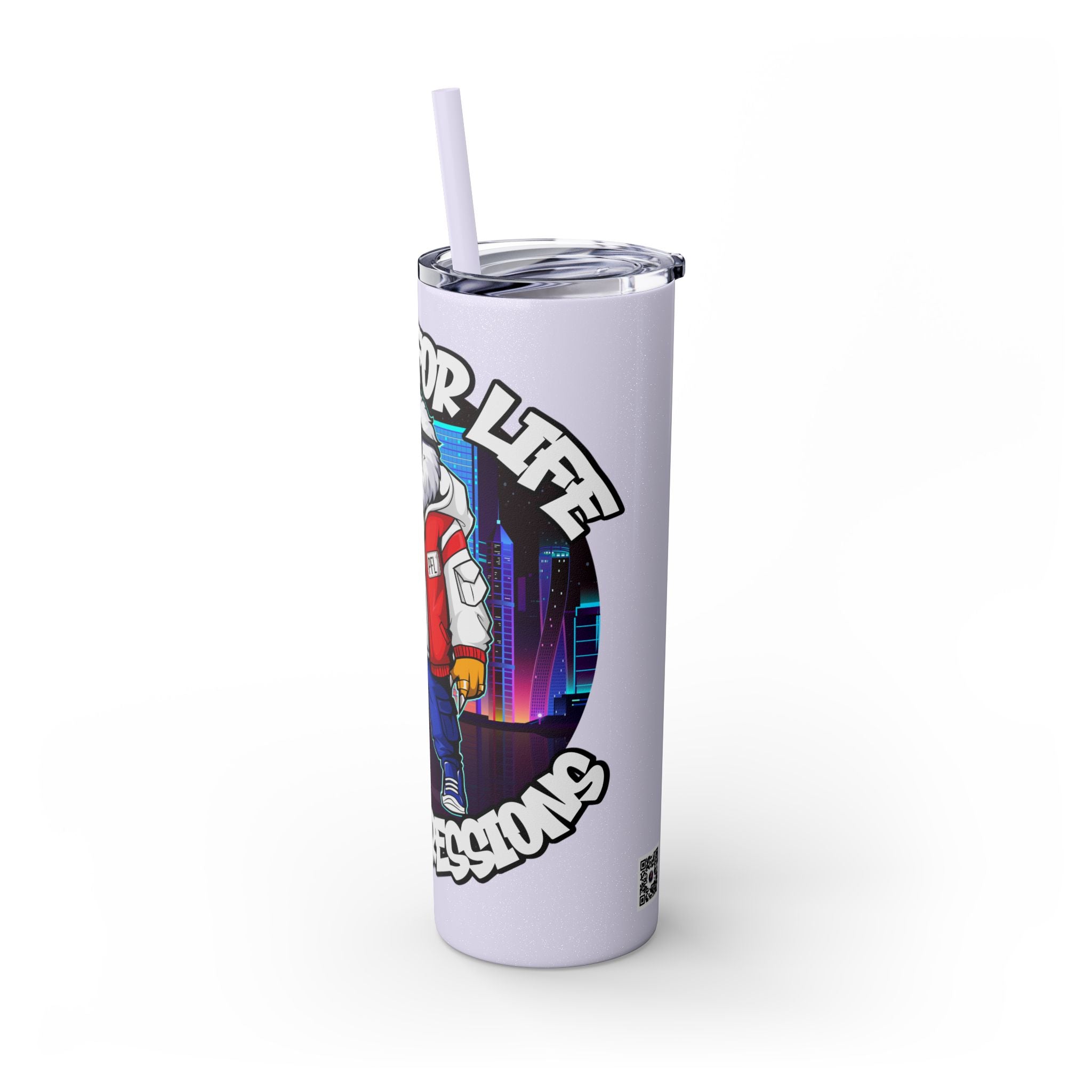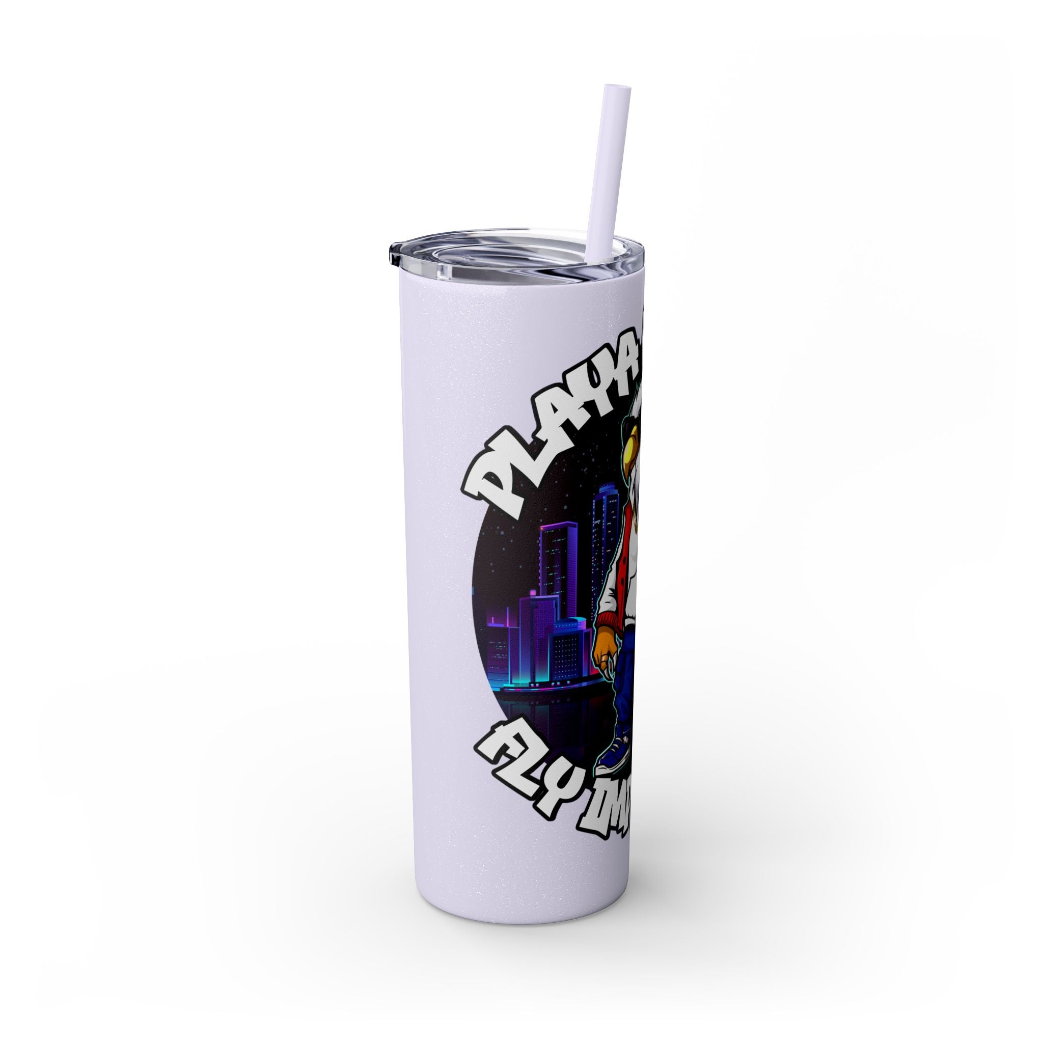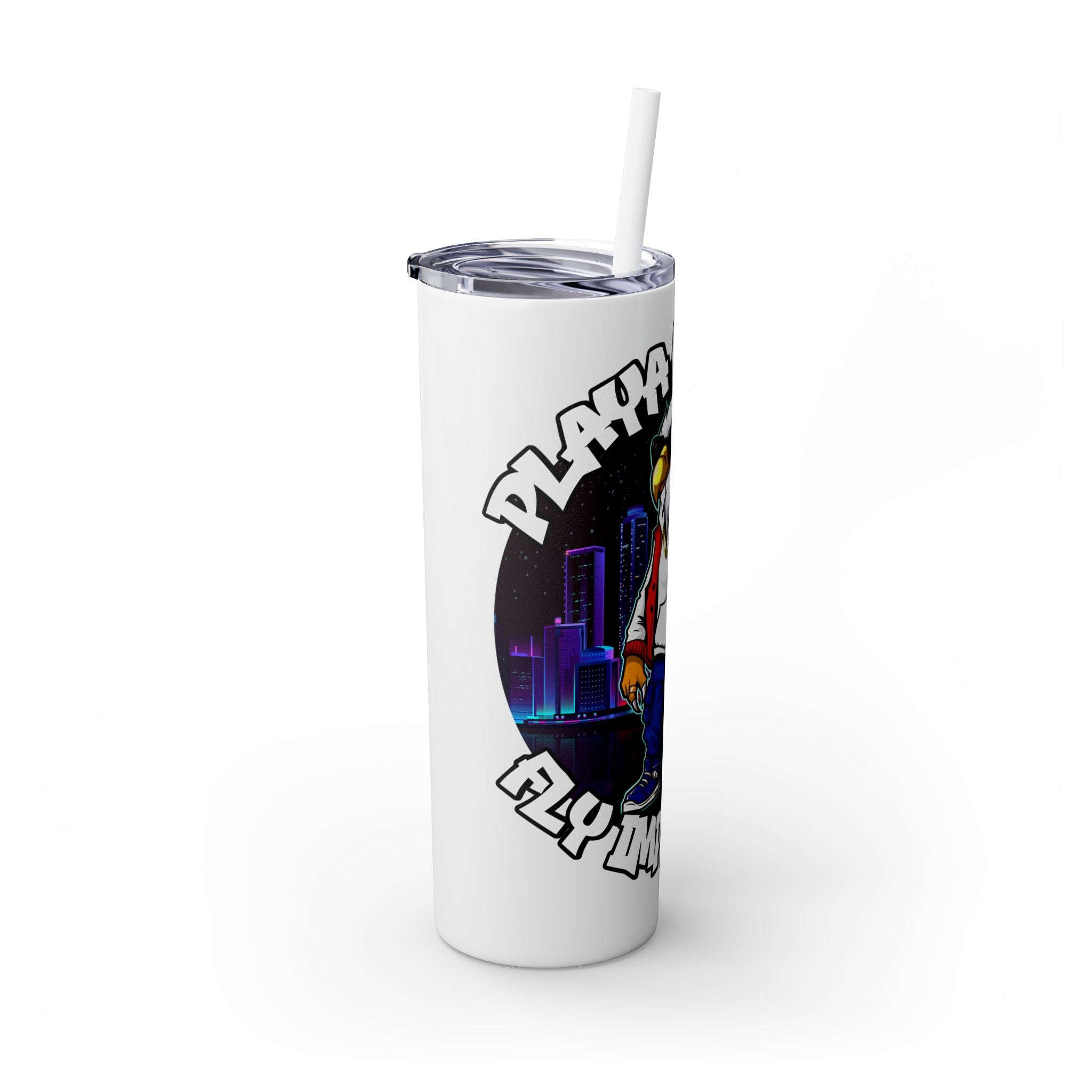 The PLAYA FOR LIFE skinny tumblers keep your drinks hot for 12h and cold for 24h, making them the perfect sipping companion all year round. With 20oz capacity, these tumblers come in a matte or glossy finish, and feature a tapered shape with a slim design for effortless carriage. The plastic press-on lid with color-matching straw makes for great practicality on the go, while all components are BPA-free and non-toxic; aka perfect for the whole family. Each tumbler has a matte UV-print finish.