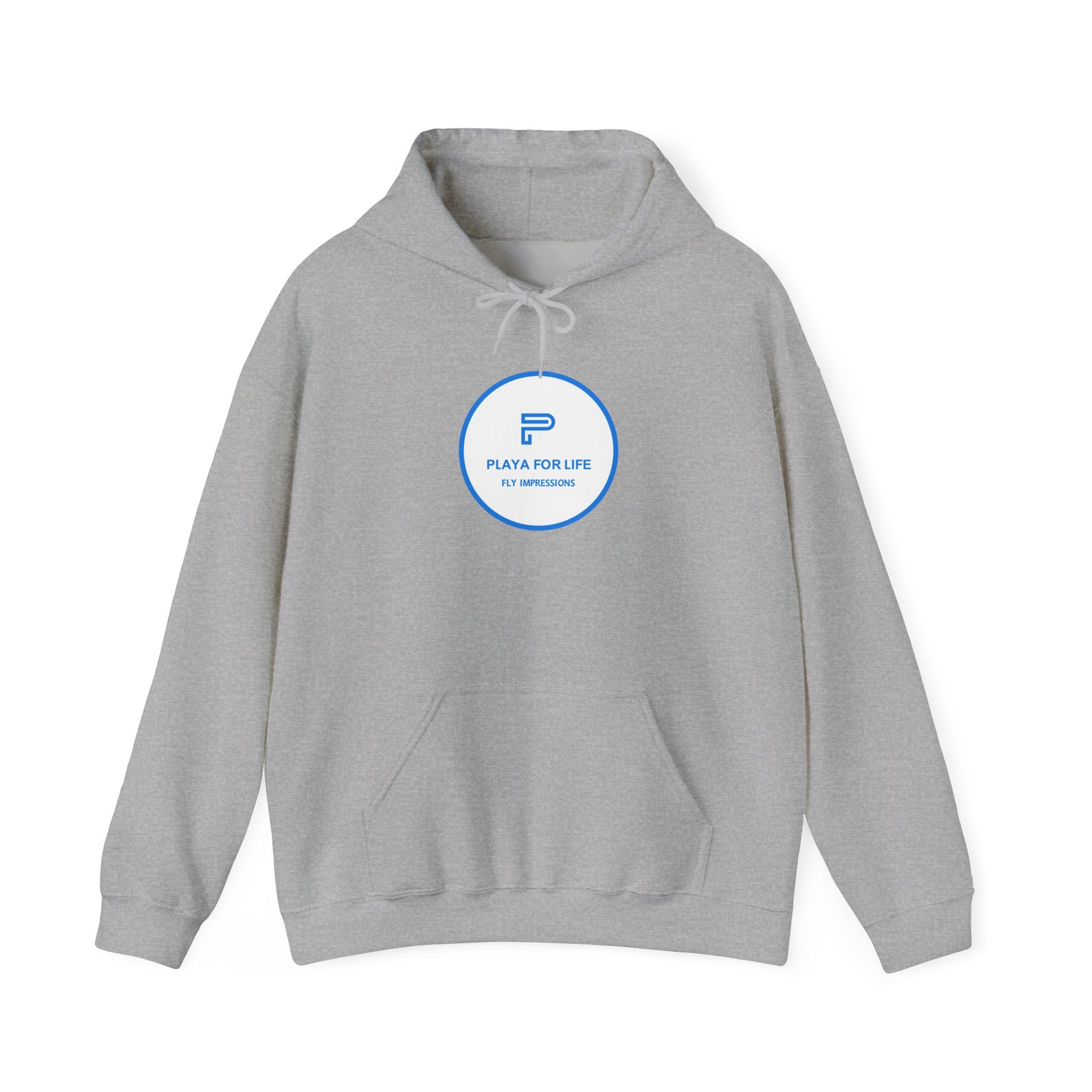 This PLAYA FOR LIFE HOODIE is relaxation with a FLY TOUCH. Made with a thick blend of cotton and polyester, it feels plush, soft and warm, a perfect choice for any cold day. In the front, the spacious kangaroo pocket adds daily practicality while the hood's drawstring is the same color as the base sweater for extra style points.