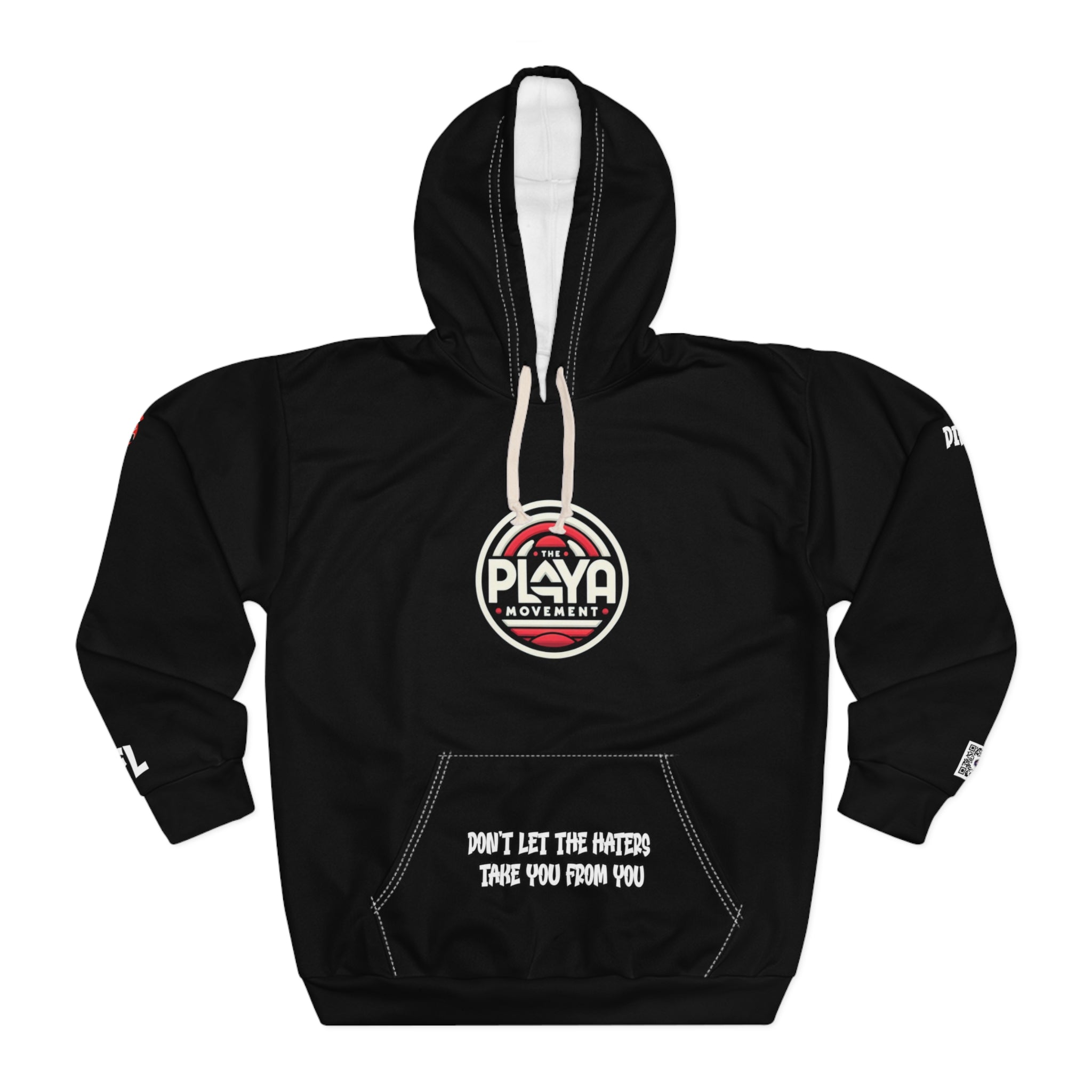 THE PLAYA MOVEMENT & LOGO HOODIE made for warmth and comfort. Made to be easily customizable without white lines at the seams, this all-over print pullover hoodie is waiting for you to add a great design and it instantly becomes fashionable. It features a large front pocket, a hood with a drawstring, and is custom cut and sewn.